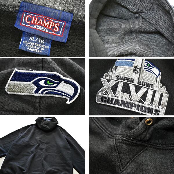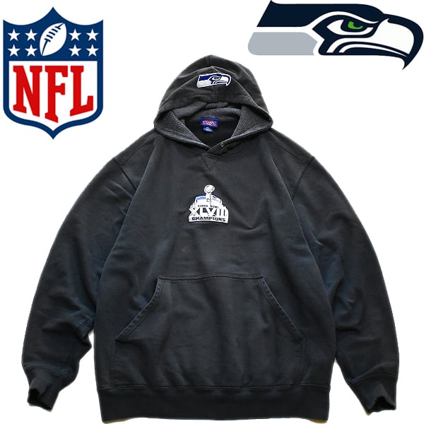 1点物◆アメフトNFLシーホークス黒スウェットパーカー古着メンズXLレディースOKアメカジブランド90sストリートスポーツ中古アメフト557972