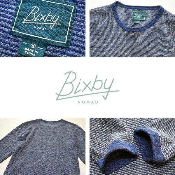 1点物◆USAブランドBixby紺サーマル長袖ロンTシャツ古着メンズMLレディースOKアメカジ90sストリート/スポーツMixサーフ柄物レトロ558046