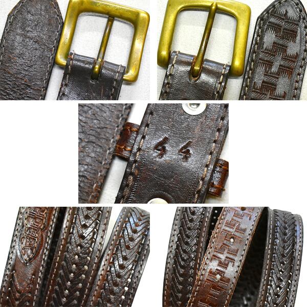 1点物◆ビッグサイズXXLバックル付メッシュ型押しレザーベルト古着メンズレディースOKアメカジ90sストリート/スポーツ茶革ブランド558016