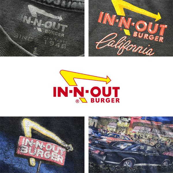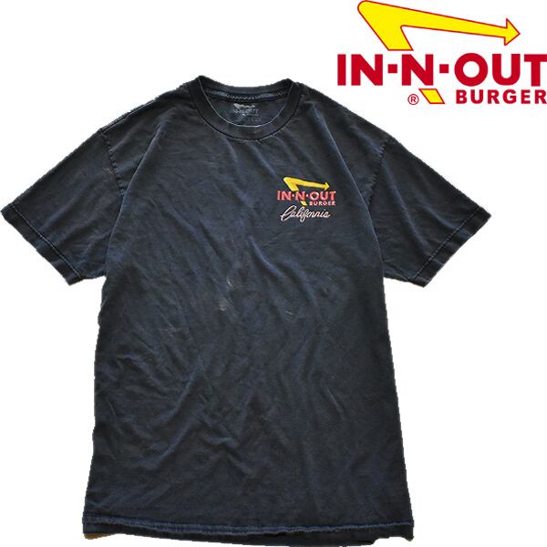 1点物◆インアウトバーガー黒US企業バックプリントTシャツ古着メンズL/XLレディースOKアメカジ90sストリート/スポーツ飲食ブランド558020