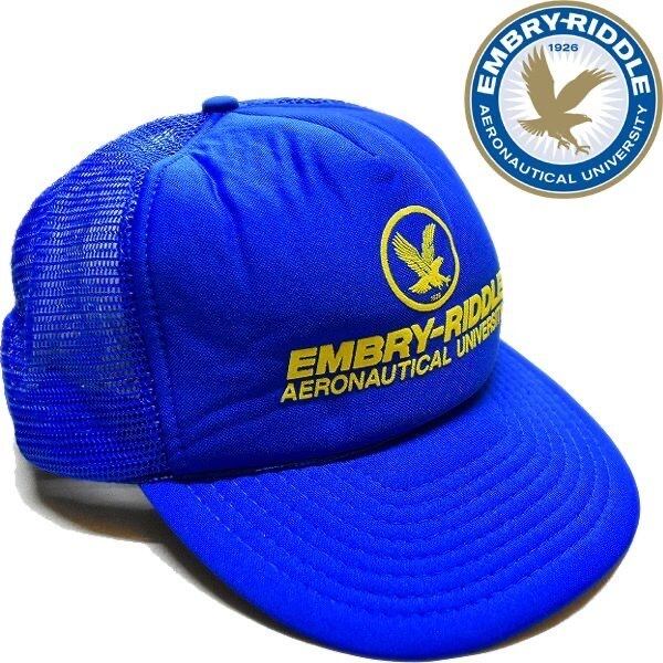1点物◆エンブリーリドル航空大学カレッジロゴ青メッシュキャップ古着メンズレディースOKアメカジ90sストリート/スポーツMix帽子558036