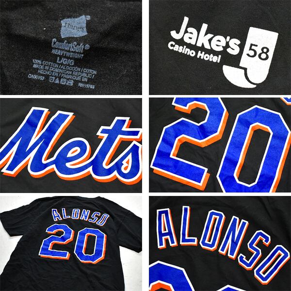 1点物◆MLBメッツMETS背番号20黒プリントTシャツ古着メンズL/XLレディースOKアメカジ90sストリート/スポーツMixブランド中古野球558109