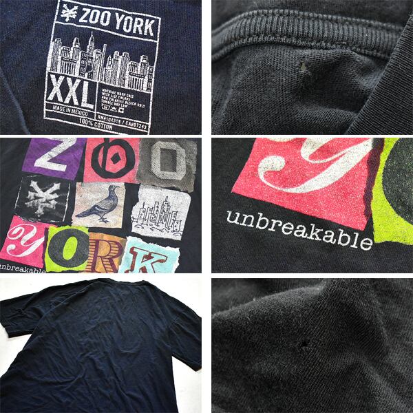 1点物◆ズーヨークZOO YORK黒プリントTシャツ古着メンズXXLレディースOKアメカジ90sストリート/スポーツMixブランド中古ビッグサイズ558114