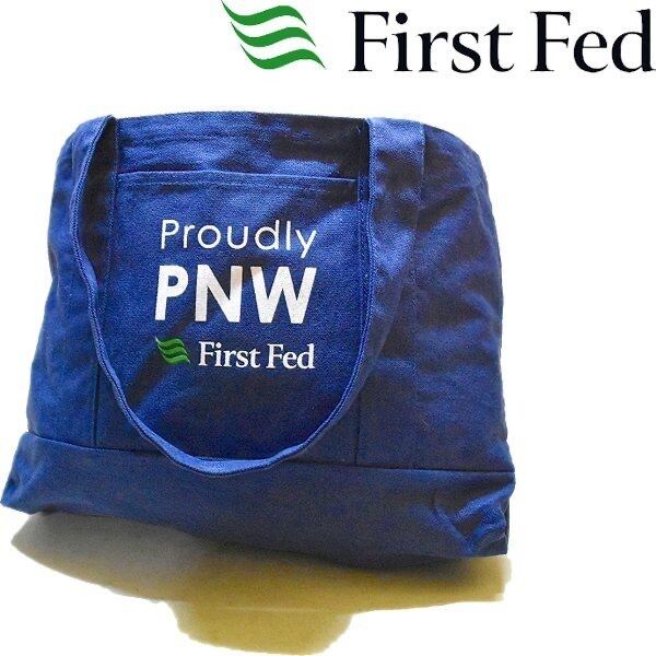 1点物◆FIRST FED企業ロゴ紺トートバッグ鞄カバン古着メンズレディースOKアメカジ90sストリート/スポーツMixエコバッグ中古プリント558130