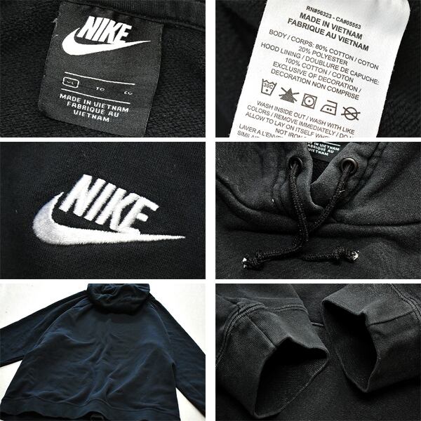 1点物◆ナイキNIKE黒プルオーバースウェットパーカー古着メンズXLレディースOKアメカジブランド90sストリートスポーツMixブラック558151