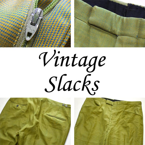 1点物◆ビンテージ70sチェック柄スラックスパンツ古着メンズMLレディースOK90sストリート/スポーツMixワイドパンツ中古チノパン黄緑558156