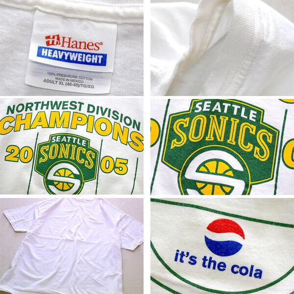 1点物◆シアトルソニックス白ペプシプリントTシャツ古着メンズXLレディースOKアメカジ90sストリート/スポーツブランドUSバスケ中古558173