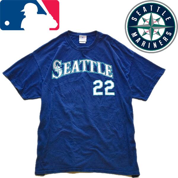1点物◆シアトルマリナーズMLBプリントTシャツ古着メンズXLレディースOKアメカジ90sストリート/スポーツ野球ブランド紺ベースボール558172