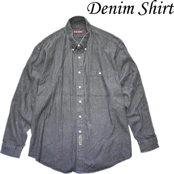1点物◆ビッグサイズ黒ブラックデニムシャツ長袖ワークシャツ古着メンズXXLレディースOKアメカジブランド/ストリート中古レトロ無地558249