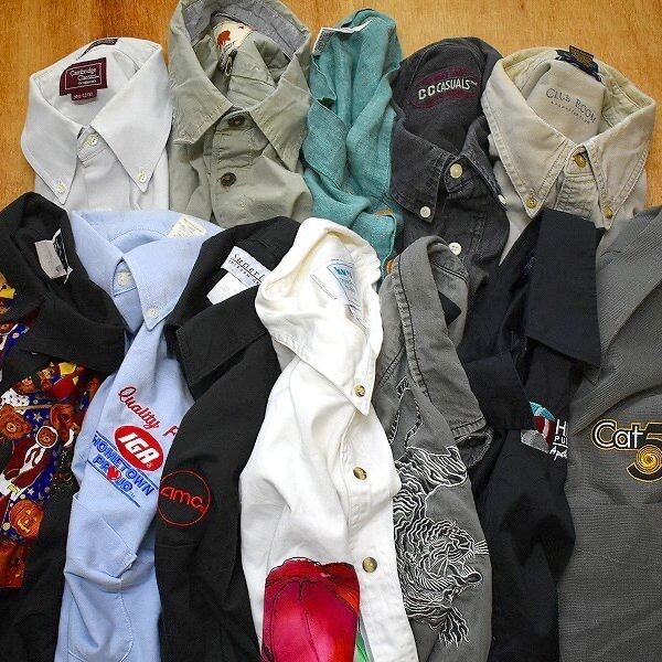 1点物◆ビッグサイズ企業ロゴ刺繍ワークシャツ長袖ボタンダウンシャツ古着メンズ2XLレディースOKアメカジブランド/ストリート/グレー558246