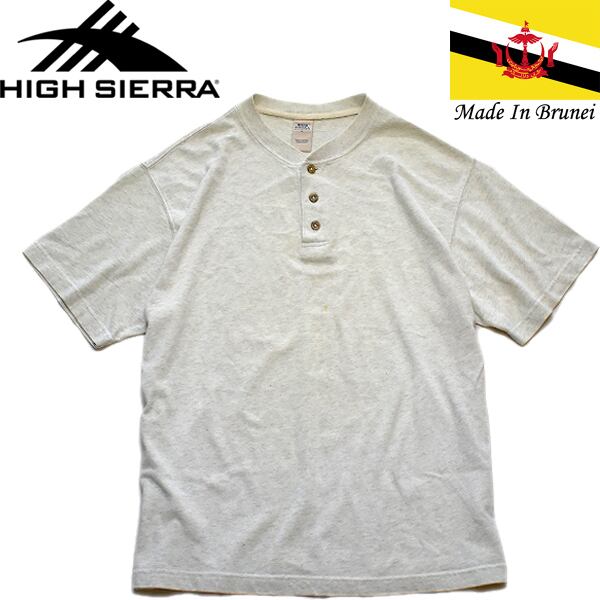 1点物◆ブルネイ製ハイシェラHSヘンリーネックTシャツ古着メンズMLレディースOKアメカジ90sストリート/スポーツアウトドアブランド558179