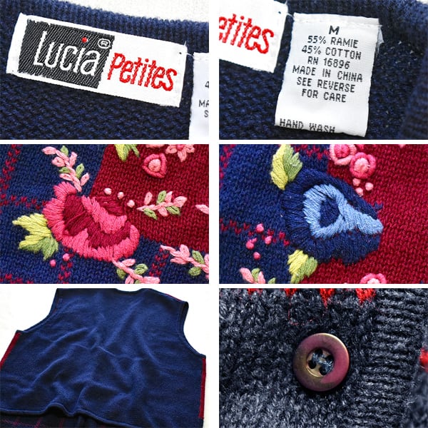 1点物◆珍品レア刺繍ロゴ花柄ニットベスト古着メンズレディースOK90sストリート/スポーツニットセーター中古ゴルフVネック紺エンジ558333