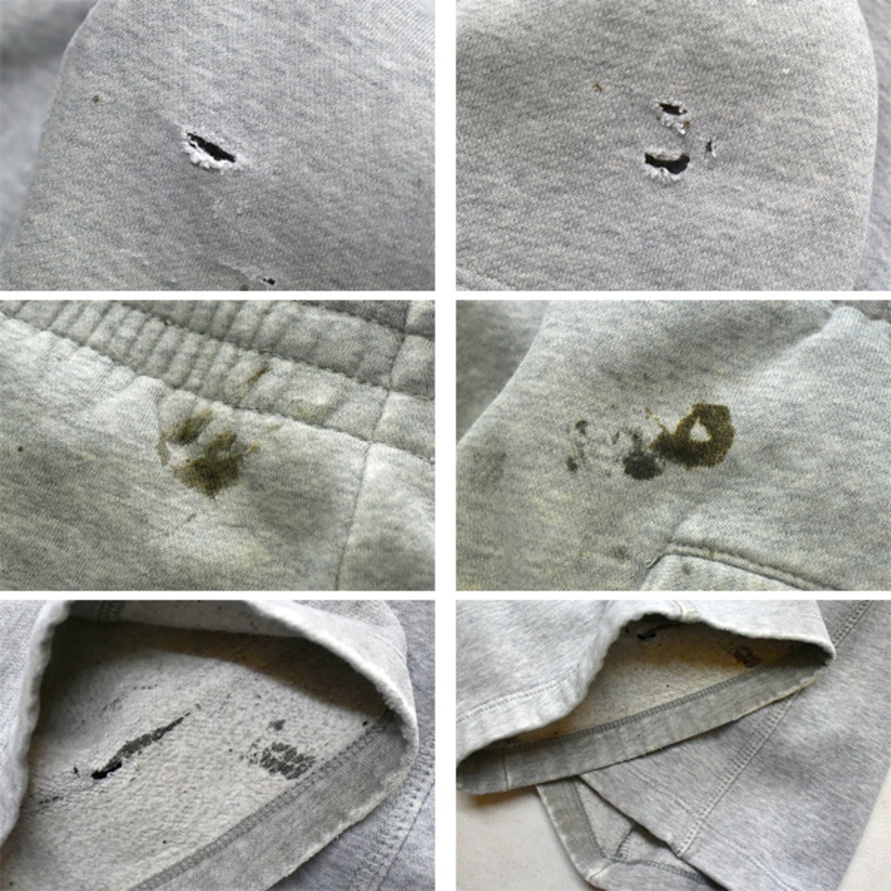 中古 使用感あり (背中ウエスト下にヨゴレ、 モモに黄ばみ、 裾にヨゴレや小穴)。 (写真参照)