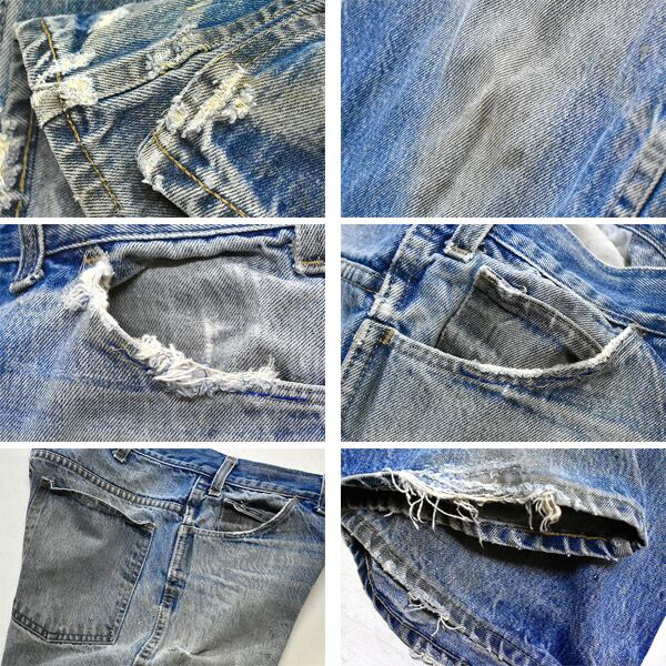 中古 使用感あり (全体的なスレ傷ヨゴレや黄ばみ、 裾にスレほつれ、 左モモやポケット周辺にヤブレ穴)。 (写真参照)