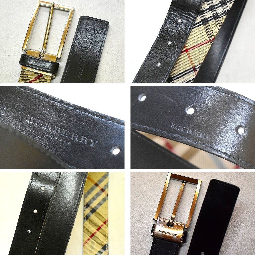 1点物◆イタリア製バーバリー柄物バックル付きレザーベルト古着メンズXLレディースOKアメカジ90sストリート/スポーツ/リバーシブル558285