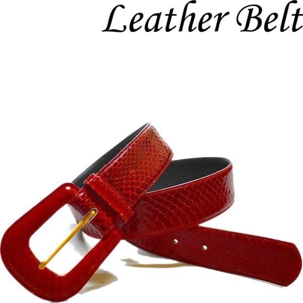 1点物◆アメリカ直輸入バックル付き蛇革レザーベルト古着メンズレディースOKアメカジ90sストリート/スポーツ中古ブランド赤えんじ558296