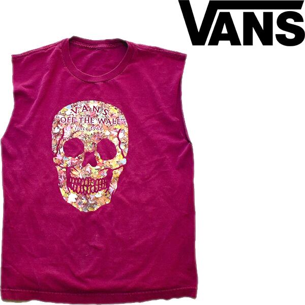 1点物◆バンズVANS骸骨スカルプリントタンクトップ古着メンズSMレディースOKアメカジ90sストリート/スポーツMixスケート半袖Tシャツ558418