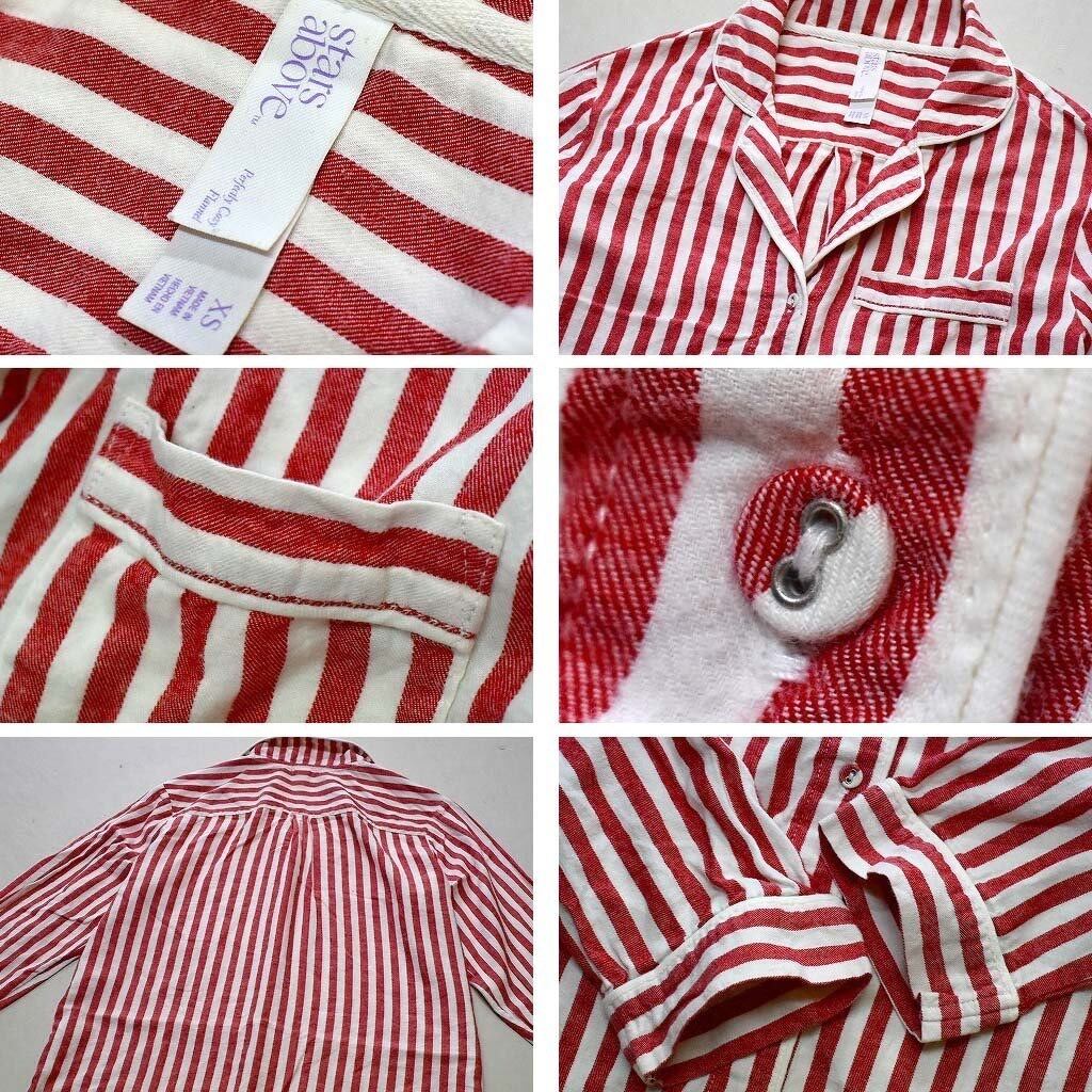 1点物◆USAブランド白赤パジャマシャツ長袖ストライプシャツ古着メンズレディースOKアメカジブランド90sストリート/スポーツ色褪せ558275