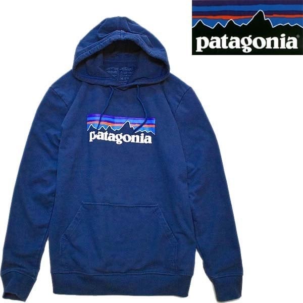 1点物◆パタゴニアPatagonia紺プリントスウェットパーカー古着メンズMLレディースOKアメカジ90sストリート/スポーツ/トレーナー登山558482