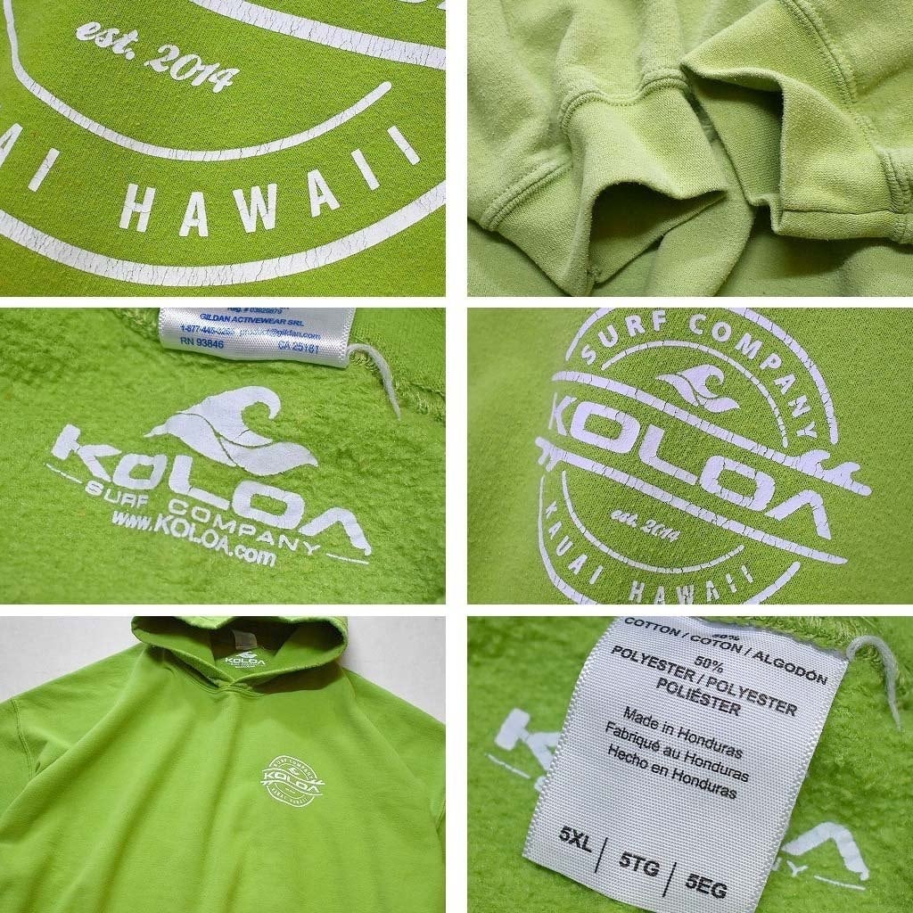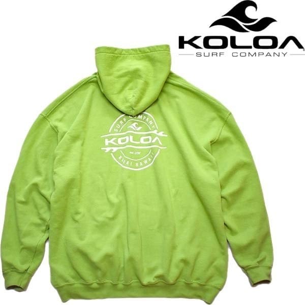 1点物◆サーフショップKOLOAバックプリント黄緑スウェットパーカー古着メンズ6XLレディース/アメカジストリート/スポーツ/トレーナー558577