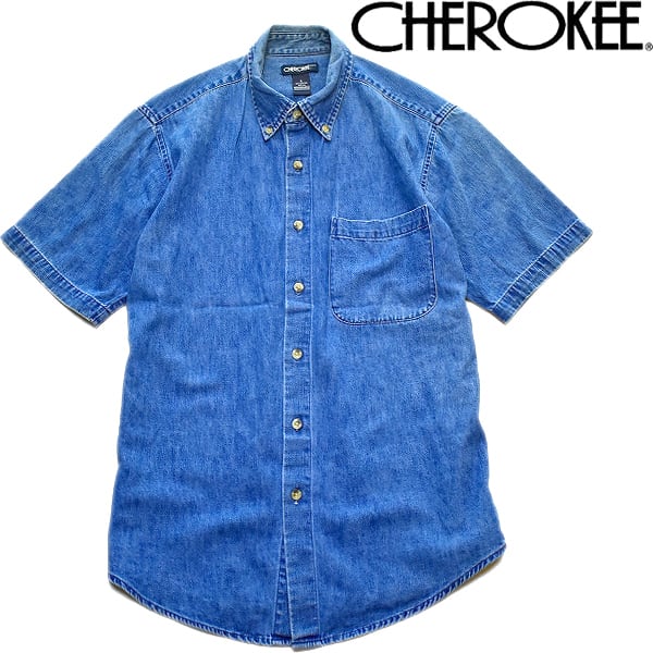 1点物◆チェロキーUSブランド半袖デニムシャツ古着メンズSMレディースOKアメカジ90sストリート/スポーツMix中古レトロワークシャツ558641