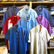 インパクト◎のストリートMixスタイル、 さり気ない襟ボタンダウン。