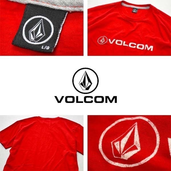 1点物◆ボルコムVOLCOMビッグサイズ赤プリントTシャツ古着メンズXLレディースOKアメカジ90sストリート/スポーツMixブランドロゴ中古558587