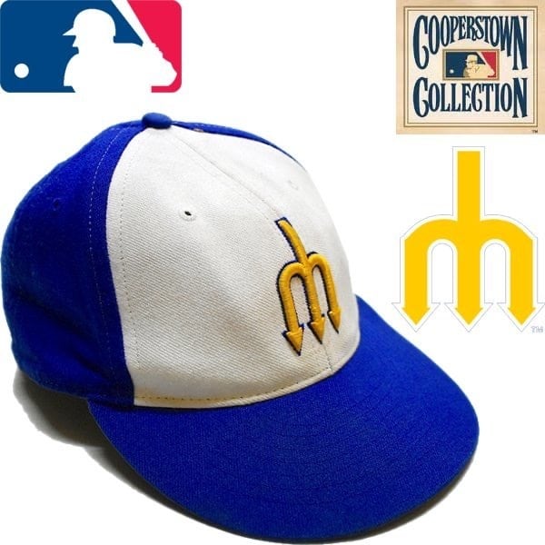 1点物◆MLBシアトルマリナーズ旧ロゴ青ツートンキャップ古着メンズレディースOKアメカジ90sストリート/スポーツMix帽子ベースボール558689