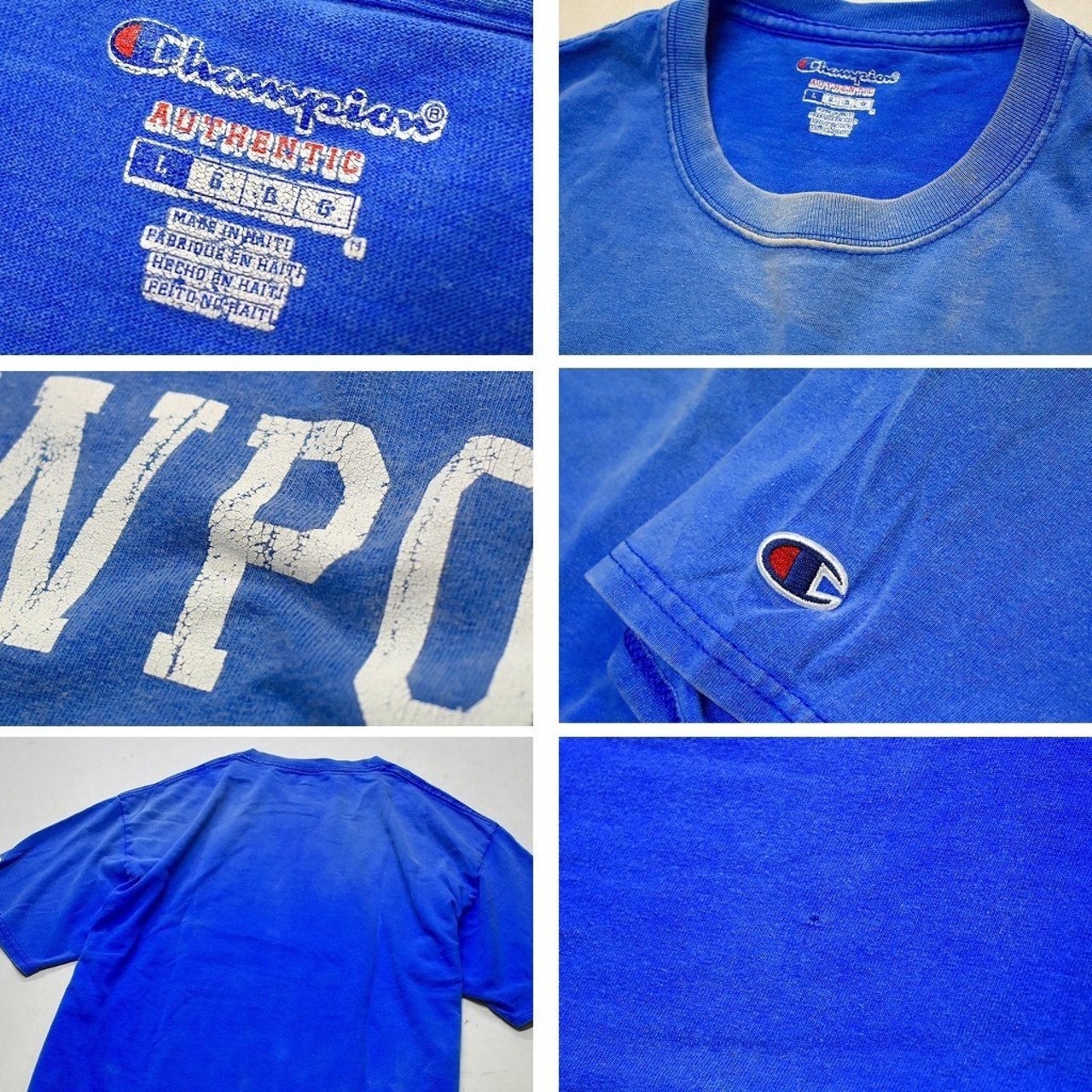 1点物◆チャンピオンChampion色褪せ青プリントTシャツ古着メンズLレディースOKアメカジ90sストリート/スポーツMixブランド目玉レトロ558692