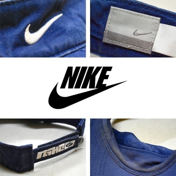 1点物◆ナイキNIKE色褪せ紺サンバイザー帽子キャップ古着メンズレディースOKアメカジ90sストリート/スポーツMixブランド中古ネイビー558736