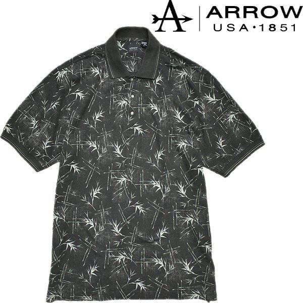 1点物◆アローARROW半袖アロハ柄ポロシャツ古着メンズL/XLレディースOKアメカジ90sストリート/スポーツ/ブランド黒ビッグサイズ中古558747