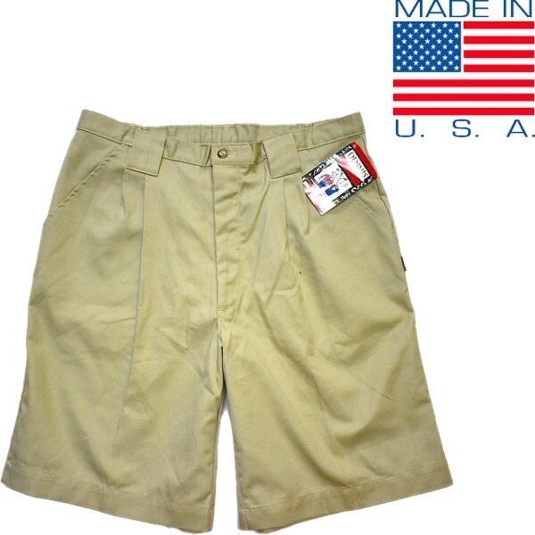 1点物◆USA製2タックショーツ/ワイドショートパンツ古着メンズLレディースOKアメカジ90sストリート/チノパン/ハーフパンツ中古カーキ558757