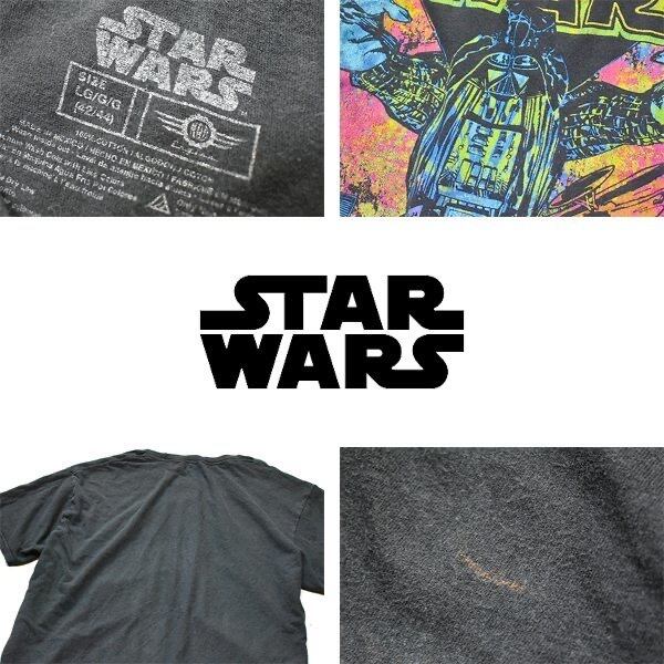 1点物◆スターウォーズ色褪せ黒プリントTシャツ古着メンズLレディースOKアメカジ90sストリート/スポーツMixグラフィックTキャラ中古558767