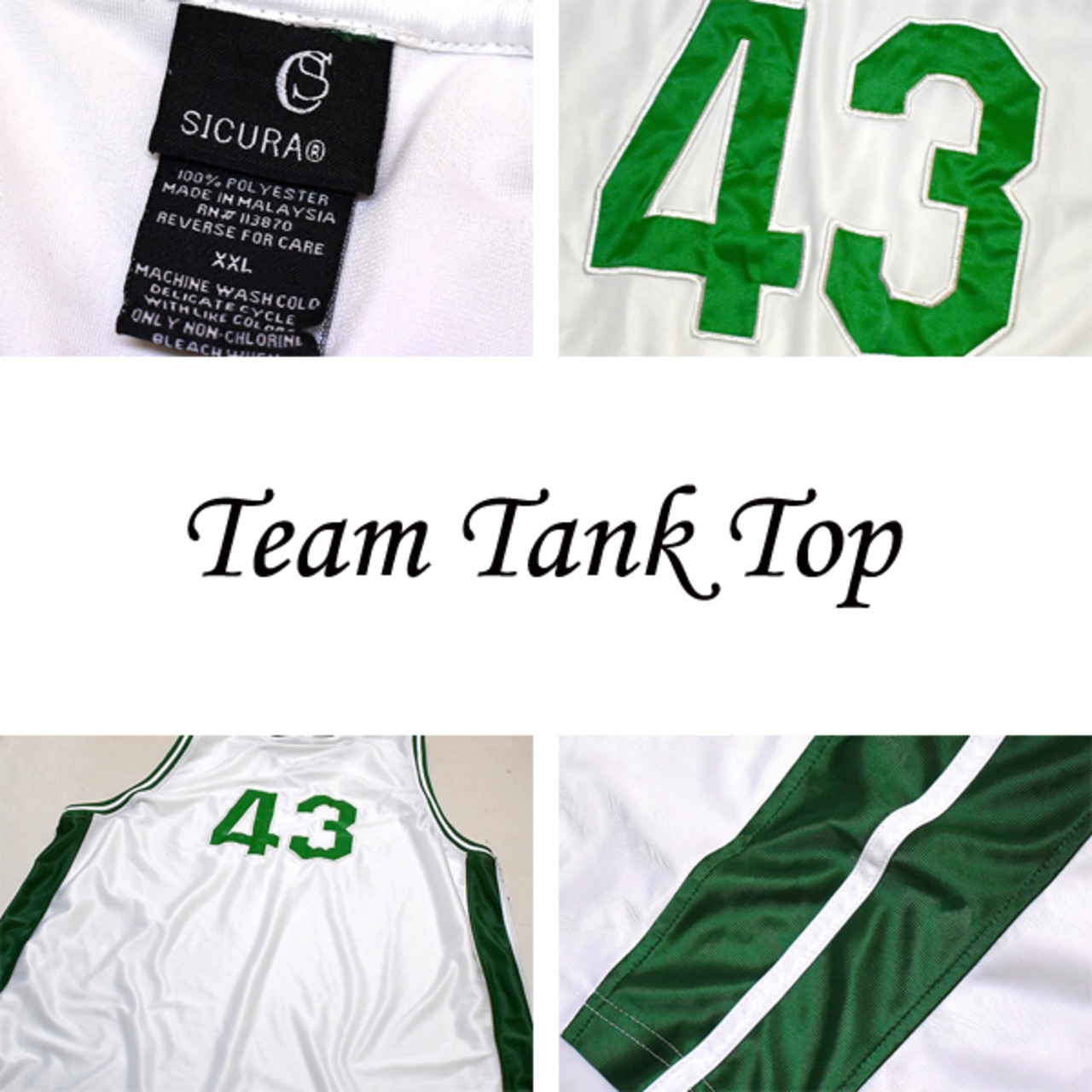 1点物◆チームタンクトップ白緑ノースリーブ古着メンズXXLレディースOKアメカジ90sストリート/スポーツブランド中古ゲームシャツ558813
