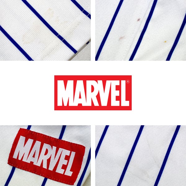 1点物◆マーベルMARVEL白紺ベースボールシャツ古着メンズSMレディースOKアメカジ90sストリート/スポーツブランド中古Tシャツ野球制服558811
