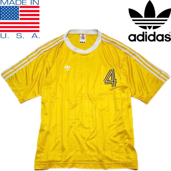 1点物◆USA製ビンテージ90sアディダス黄色Tシャツ古着メンズXLレディースOKアメカジ90sストリート/スポーツブランド中古ゲームシャツ558806