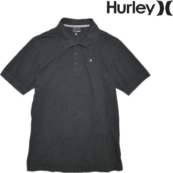 1点物◆ハーレーHURLEY黒ワンポイント半袖ポロシャツ古着メンズL/XLレディースOKアメカジブランド90sストリート/スポーツ/ブラック558824
