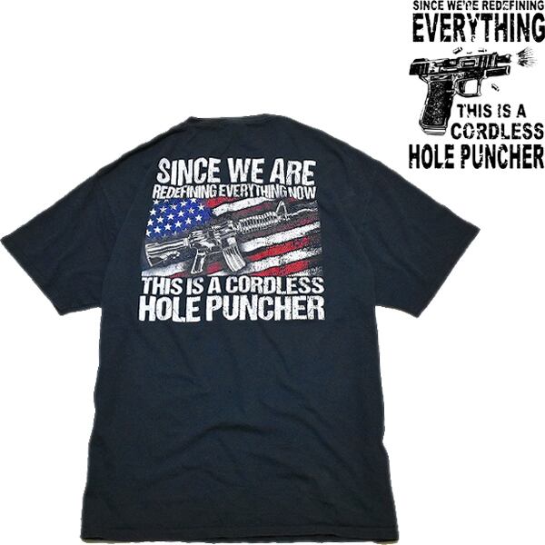 1点物◆星条旗ライフル黒バックプリントTシャツ古着メンズL/XLレディースOKアメカジ90sストリート/スポーツ/ファッションブランド銃558831