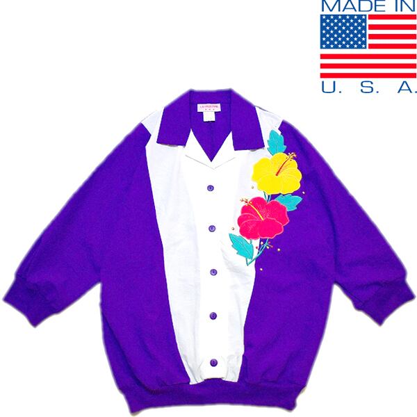1点物◆USA製プルオーバー珍品デザインシャツ柄シャツ古着メンズレディースOKアメカジ90sストリート/スポーツMix斬新派手ブランド紫558854