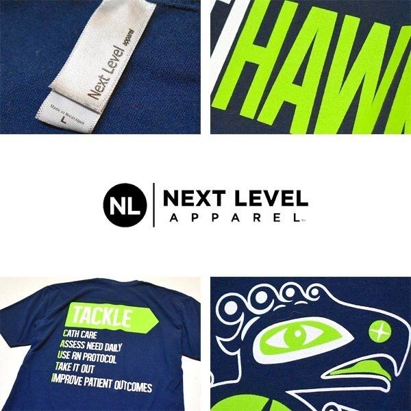1点物◆CAUTI HAWKS紺バックプリントTシャツ古着メンズL/XLレディースOKアメカジブランド90sストリート/スポーツ/ビッグサイズ中古558899