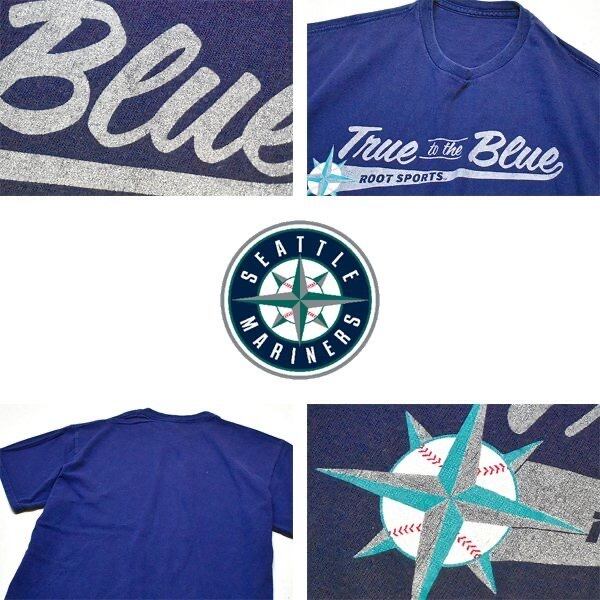 1点物◆MLBシアトルマリナーズ色褪せ紺プリントTシャツ古着メンズMLレディースOKアメカジブランド90sストリート/スポーツ/レトロ野球558895