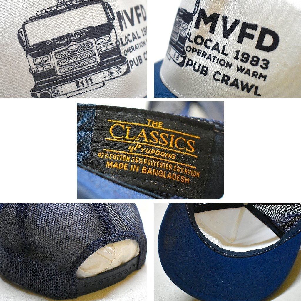 1点物◆YUPOONG紺白メッシュキャップ帽子/古着メンズレディースOKアメカジ90sストリート/スポーツMixトラッカーキャップ中古ネイビー558868