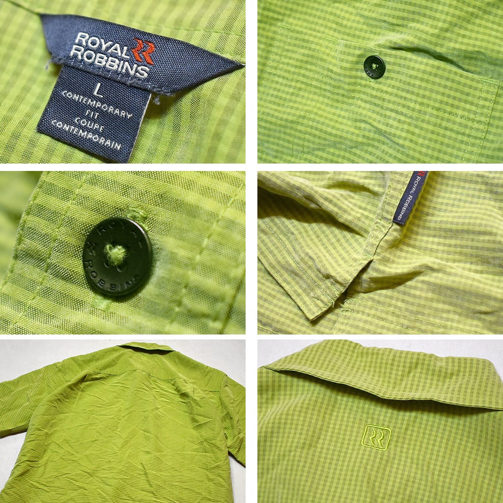 1点物◆ロイヤルロビンズ黄緑ビッグサイズ半袖チェックシャツ古着メンズL/XLレディースOKアメカジブランド90sストリート/スポーツMix558915