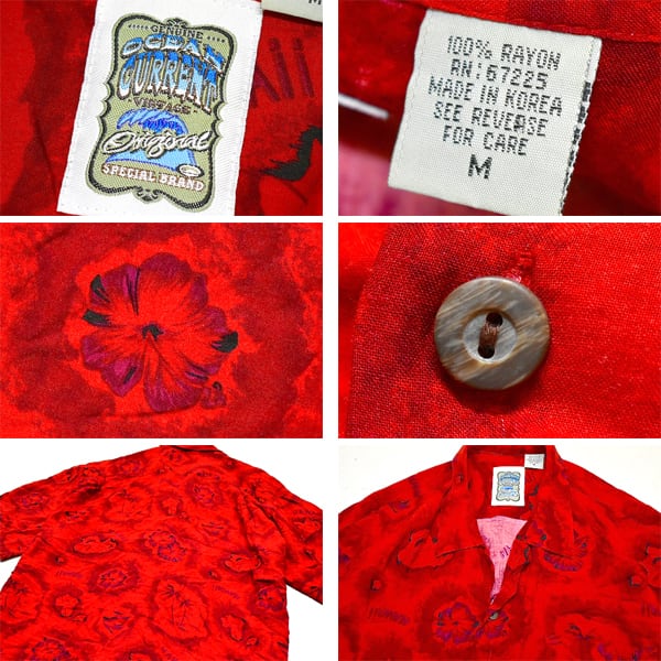 1点物◆赤ハイビスカス柄レーヨンシャツ/アロハシャツ古着メンズMLレディースOKアメカジ90sストリート/スポーツ/ブランド柄シャツ558925 | 古着屋カチカチ 東京都北区 JR王子駅前で実店舗展開中 通販もOK Tokyo Japan