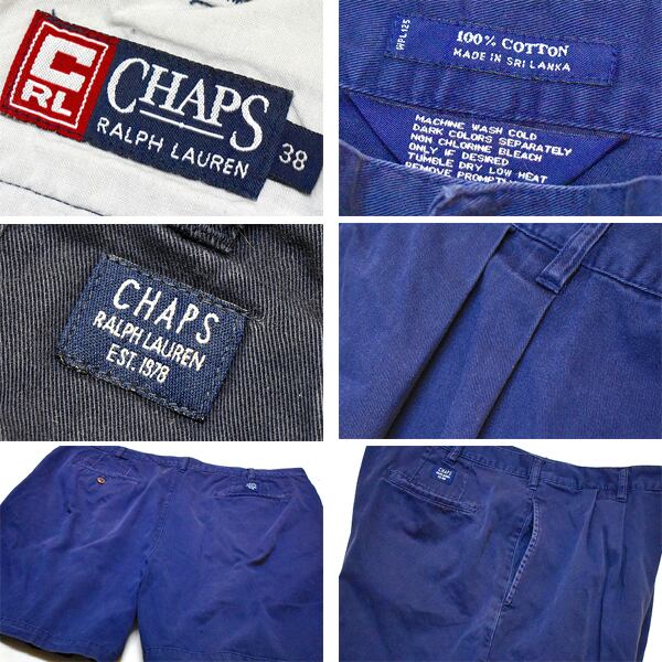 1点物◆ラルフCHAPSチャップス2タック紺ショートパンツ古着メンズ38XLレディースOKアメカジ90sストリート/ブランド/チノパンショーツ558942