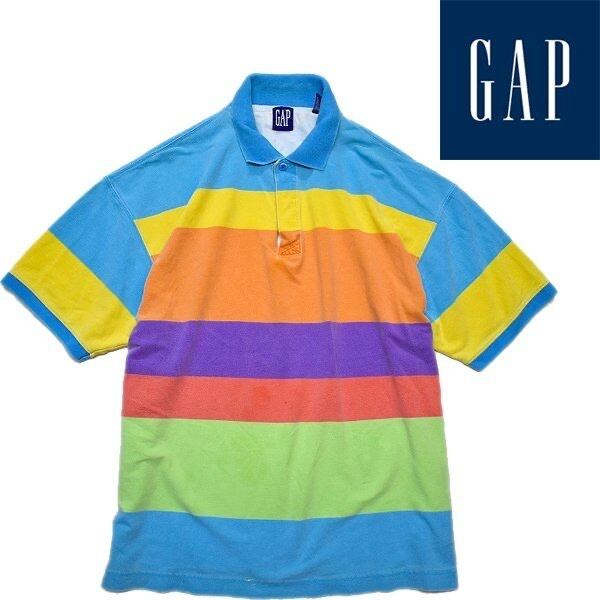 1点物◆オールドギャップ半袖ボーダー柄ポロシャツ古着メンズL/XLレディース/アメカジブランド90sストリート/スポーツ派手ビンテージ558971