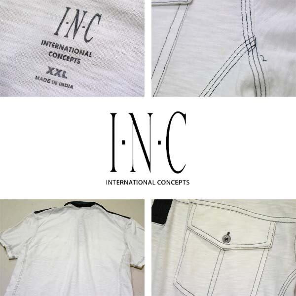 1点物◆USAブランドINC白黒ビッグサイズ半袖ポロシャツ古着メンズ2XLレディースOKアメカジ90sストリート/スポーツ切替えデザイン中古558962