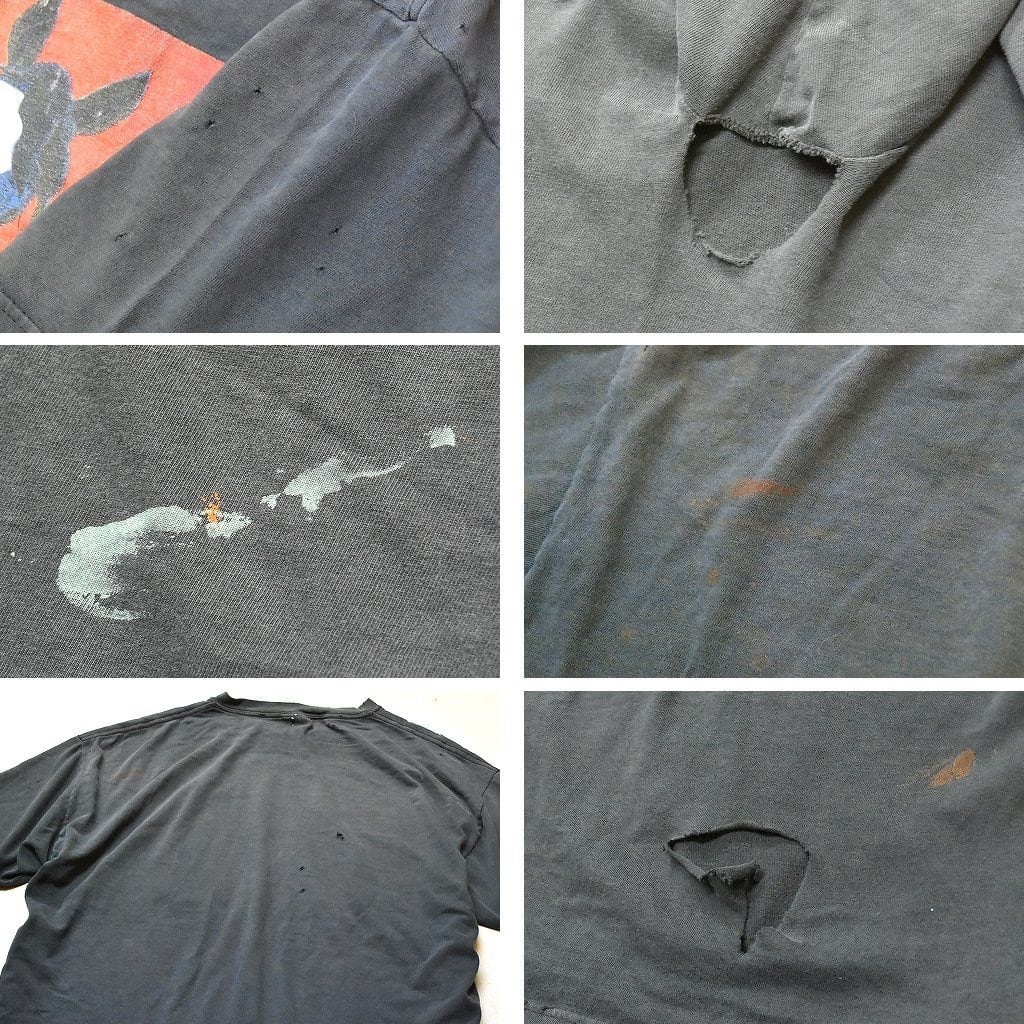 1点物◆ヘインズ雰囲気系ダメージ色褪せ黒アートプリントTシャツ古着メンズXLレディースOKアメカジ90sストリート/スポーツ/ボロボロ559027