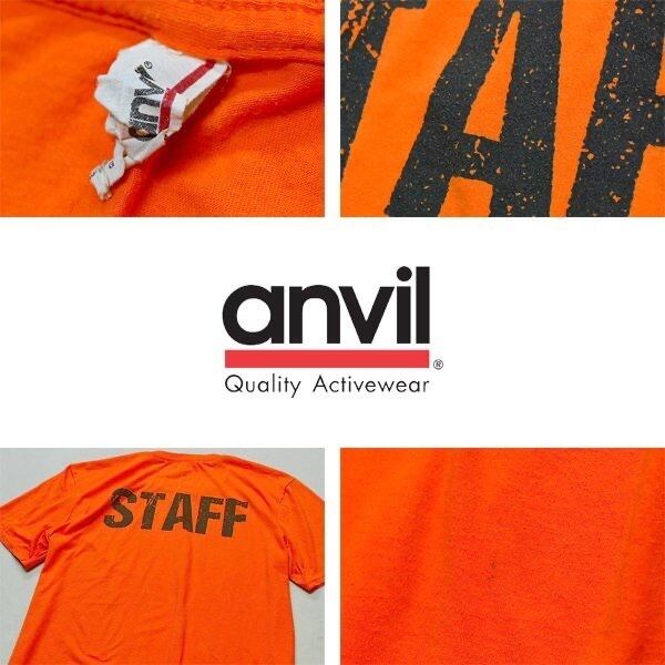 1点物◆スタッフSTAFFオレンジ蛍光バックプリントTシャツ古着メンズXLレディースOKアメカジブランド90sストリート/スポーツMixレトロ559080