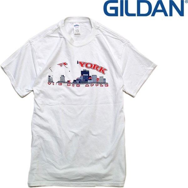 1点物◆ギルダンGILDANビッグアップルNY白プリントTシャツ古着メンズMLレディースOKアメカジブランド90sストリート/スポーツ白T丸首559116